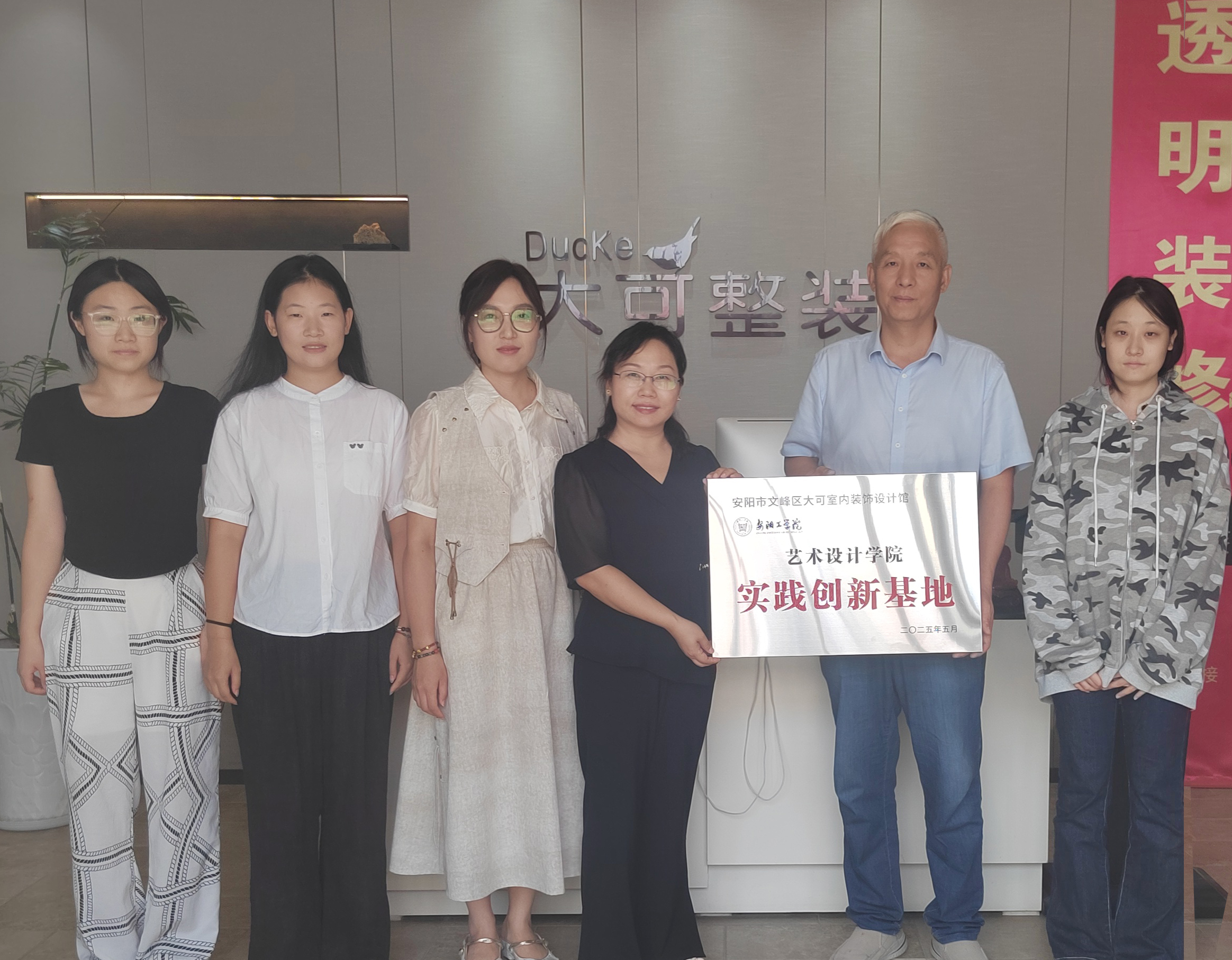 2025 年 9 月 10 日,艺术设计学院与大可室内装饰设计馆成功举行实践创新基地挂牌仪式,大可室内装饰设计馆相关负责人、艺术设计学院环境设计教研室主任许慧和师生代表参加仪式。